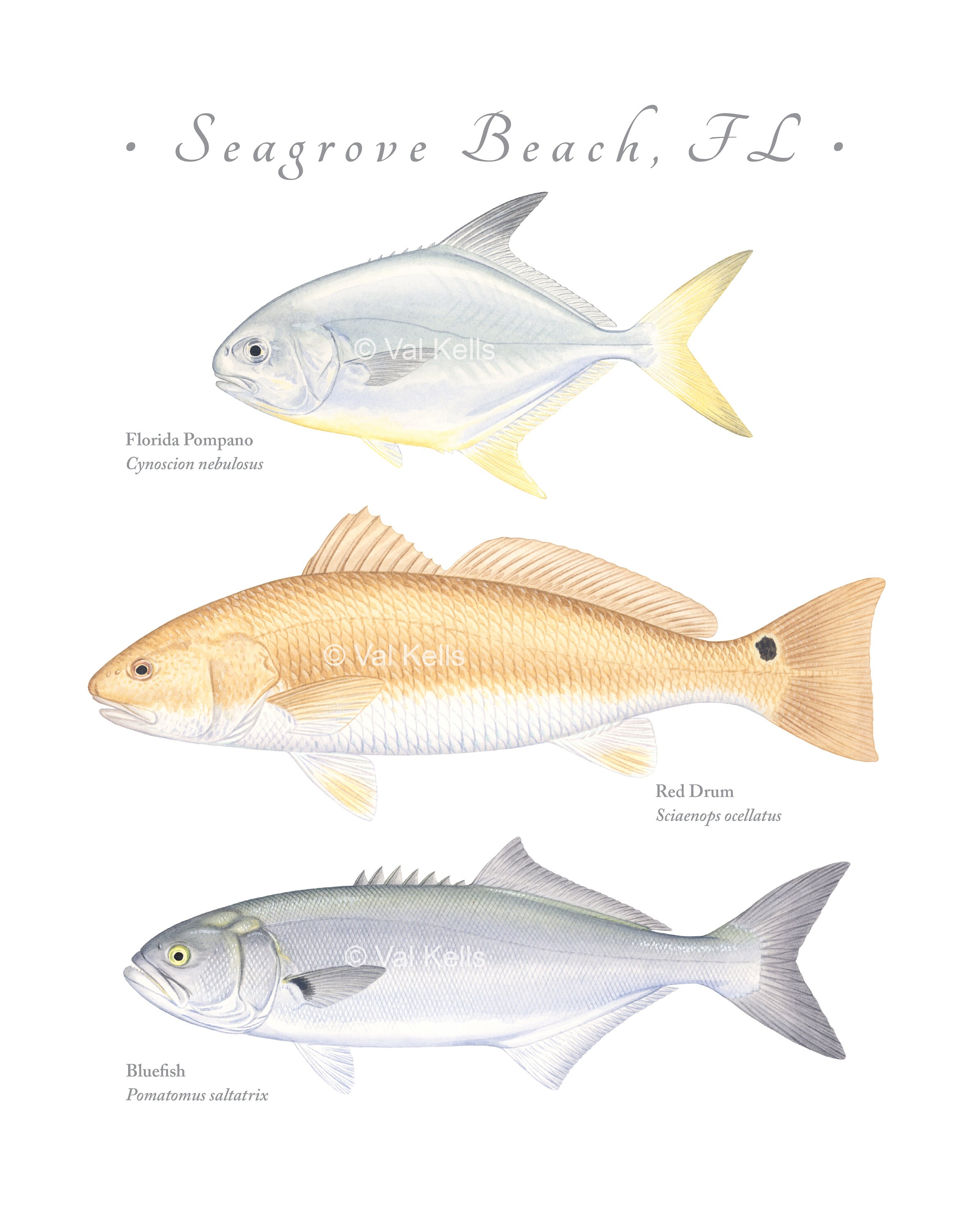 Customizable Florida Pompano Red Drum Bluefish Giclee In 4 Etsy Uk
